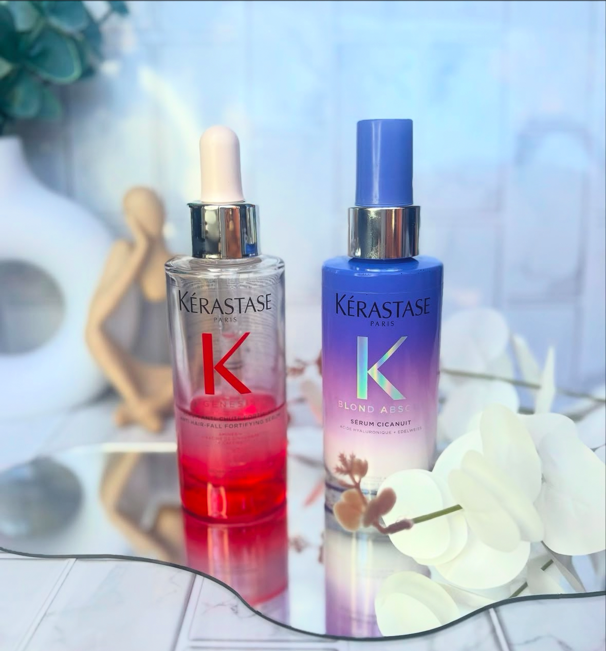 Kérastase Genesis Fortifying Anti Hair-Fall Serum, and Kérastase Blond Absolu Cicanuit Night Hair Serum are the best power duo for healthy, hydrated and smooth hair! The Anti hair-fall serum supports hair from the scalp down, works to reduce hair fall, strengthens and cares for hair and soothes an irritated scalp. This serum has been created to address severe hair loss at the root and throughout the lengths. This serum is suitable for all hair types and textures, and safe to use on coloured hair.